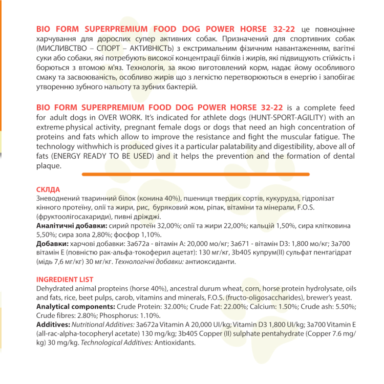 Bio Form (Біо Форм) Super Premium Food Dog Power Horse – сухий корм для собак з кониною