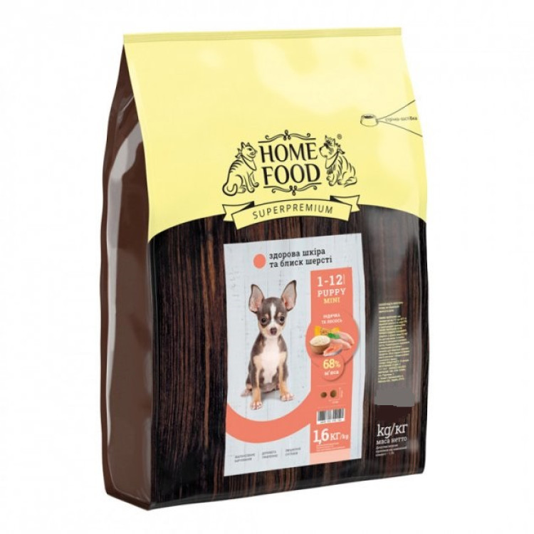 Home Food Puppy Mini – це високоякісний сухий корм, спеціально розроблений для молодих цуценят дрібних порід собак. Цей корм надає вашому вихованцю все необхідне для здорового зростання та розвитку у цей важливий період життя.
