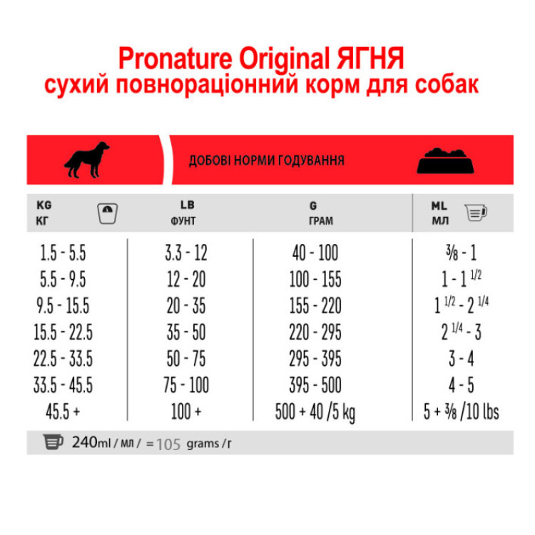 Pronature Original Adult Lamb – це високоякісний сухий корм, призначений для дорослих собак. Основою цього корму є ягня, яке є відмінним джерелом білка та поживних речовин.