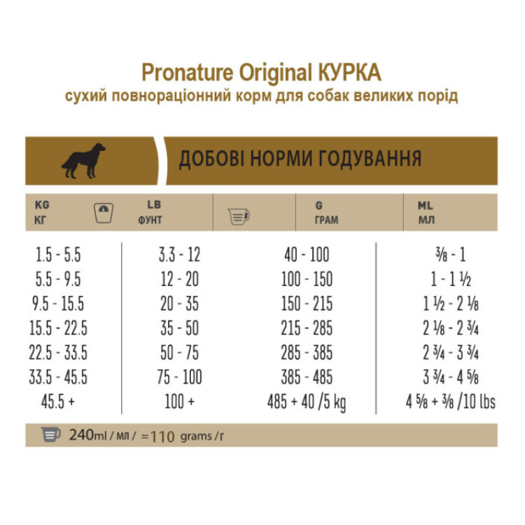 Pronature Original Chicken With Oatmeal також містить фрукти, овочі та трави, що збагачують раціон вашого собаки важливими поживними речовинами. Цей корм не містить штучних барвників, ароматизаторів та консервантів, що робить його більш натуральним та безпечним для вашого вихованця.